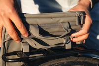 Mit nur wenigen Handgriffen lässt sich der Rucksack zu einer Fahrradtasche umwandeln. Dank des smarten Halterungssystem, passt die Tasche an jeden beliebigen Gepäckträger.